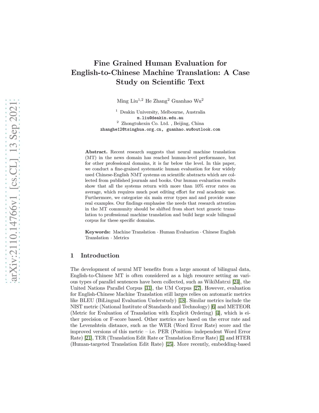 Fine Grained Human Evaluation for English-to-Chinese Machine