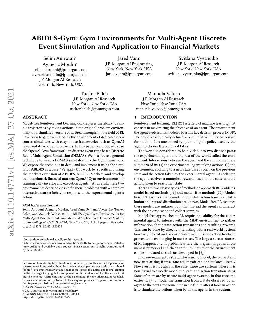 ABIDES-Gym: Gym Environments for Multi-Agent Discrete Event Simulation