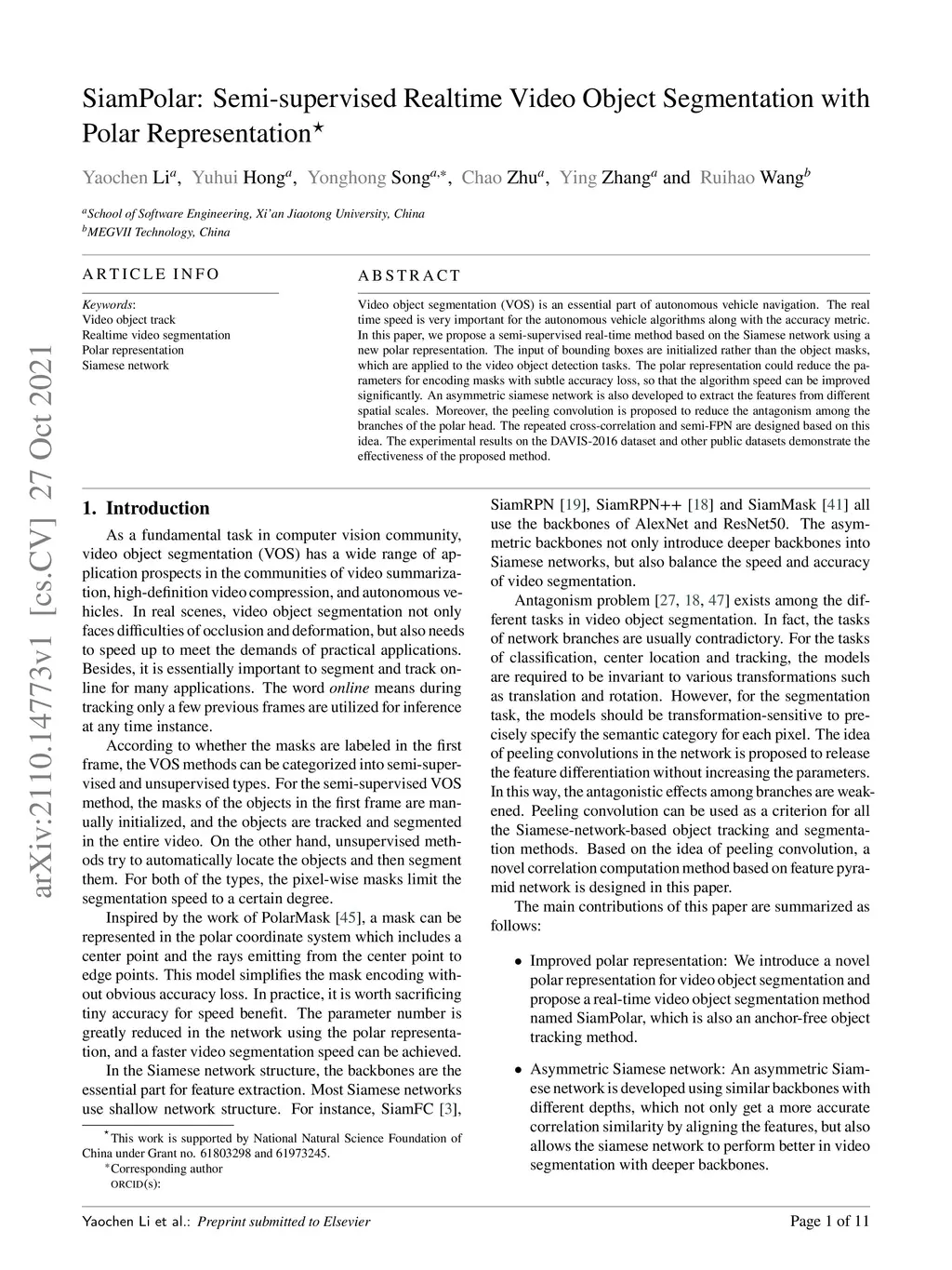 SiamPolar: Semi-supervised Realtime Video Object Segmentation with Polar