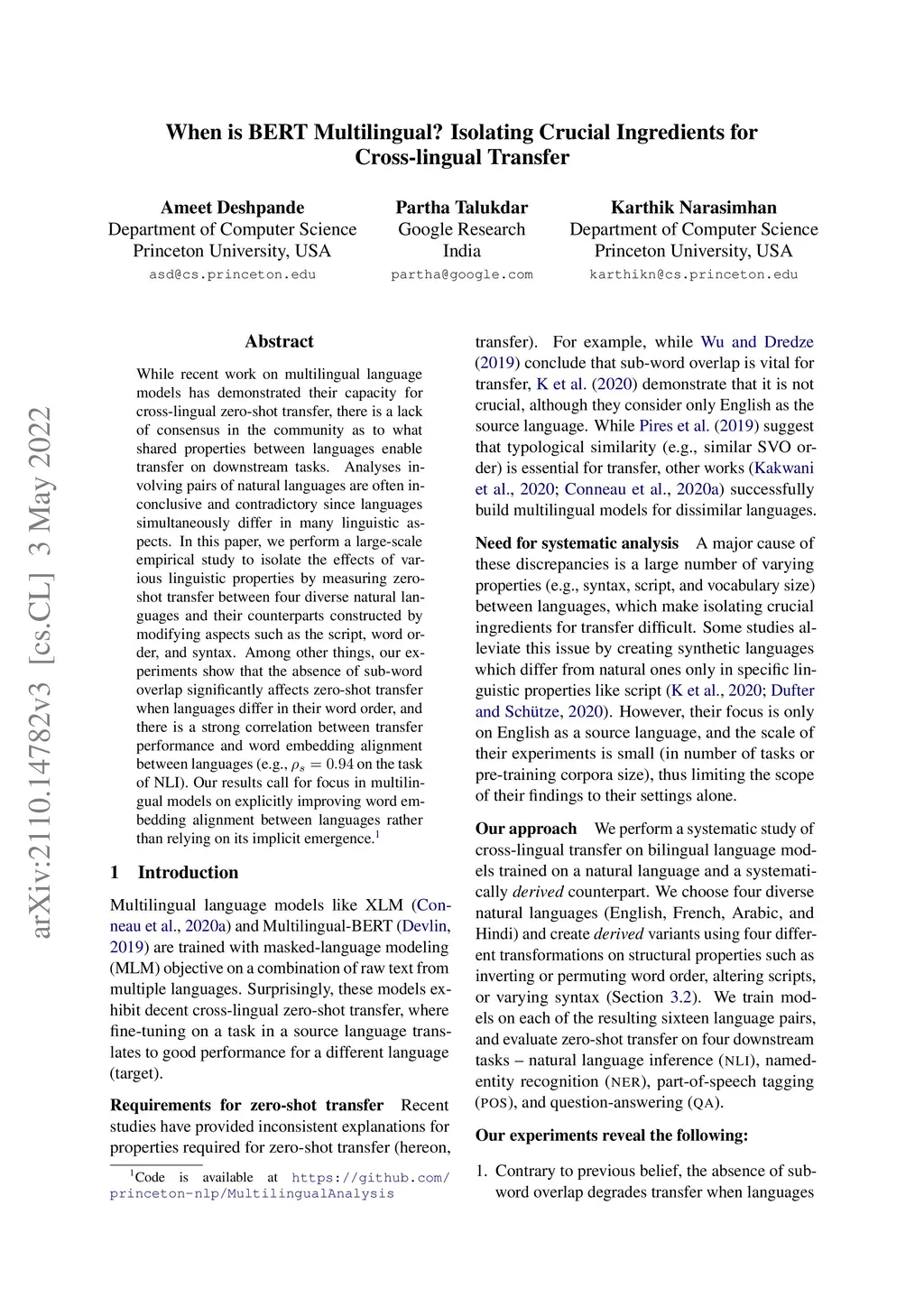 Cross-lingual Transfer