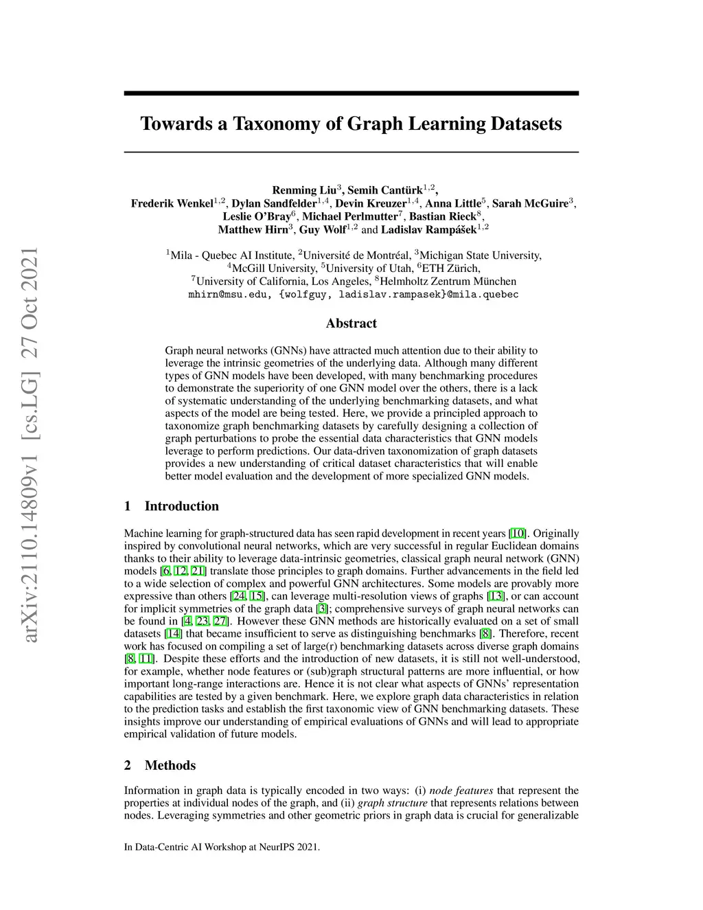 Towards a Taxonomy of Graph Learning Datasets