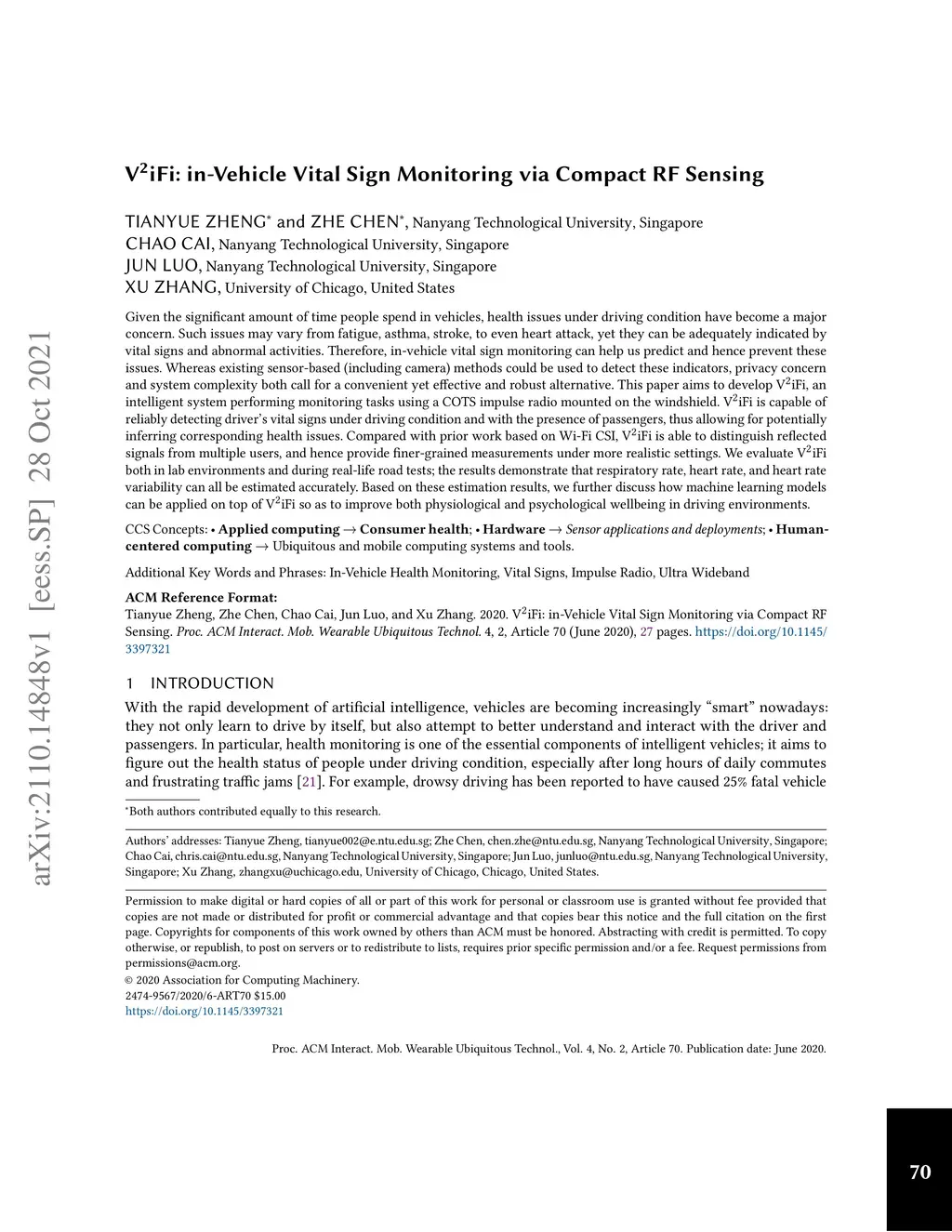 V2iFi: in-Vehicle Vital Sign Monitoring via Compact RF Sensing
