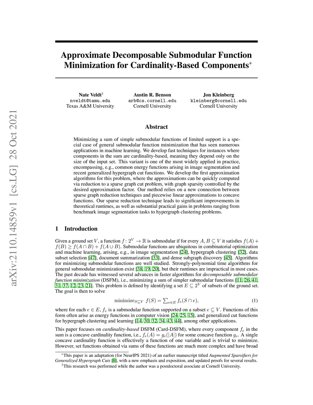 Minimizing a sum of simple submodular functions of limited support is a special case of general submodular function minimization that has seen numerous applications in machine learning. We develop fast techniques for instances where components in the sum are cardinality-based, meaning they depend only on the size of the input set. This variant is one of the most widely applied in practice, encompassing, e.g., common energy functions arising in image segmentation and recent generalized hypergraph cut functions. We develop the first approximation algorithms for this problem, where the approximations can be quickly computed via reduction to a sparse graph cut problem, with graph sparsity controlled by the desired approximation factor. Our method relies on a new connection between sparse graph reduction techniques and piecewise linear approximations to concave functions. Our sparse reduction technique leads to significant improvements in theoretical runtimes, as well as substantial practical gains in problems ranging from benchmark image segmentation tasks to hypergraph clustering problems.