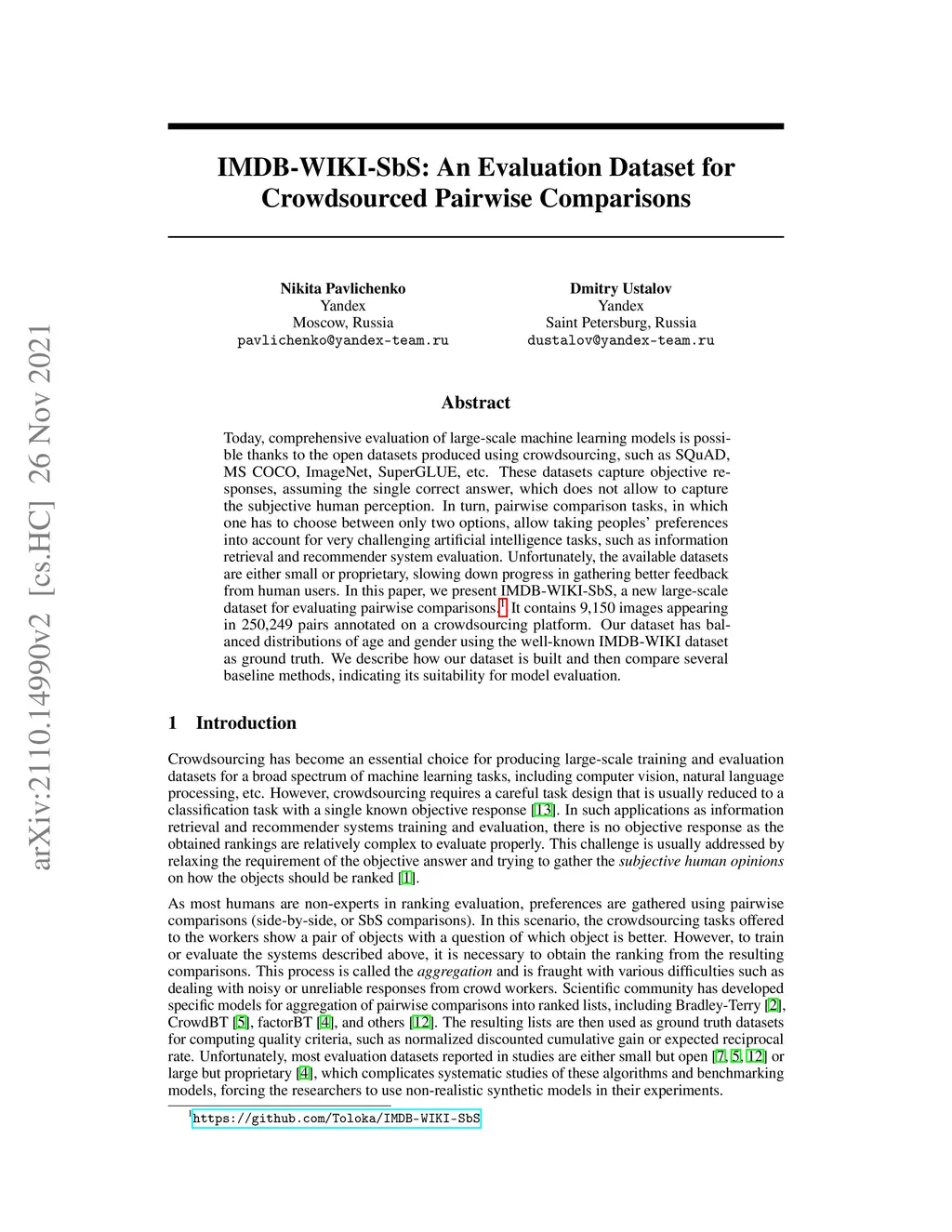 IMDB-WIKI-SbS: An Evaluation Dataset for Crowdsourced Pairwise