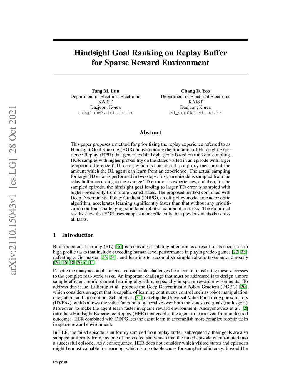 Hindsight Goal Ranking on Replay Buffer for Sparse Reward Environment
