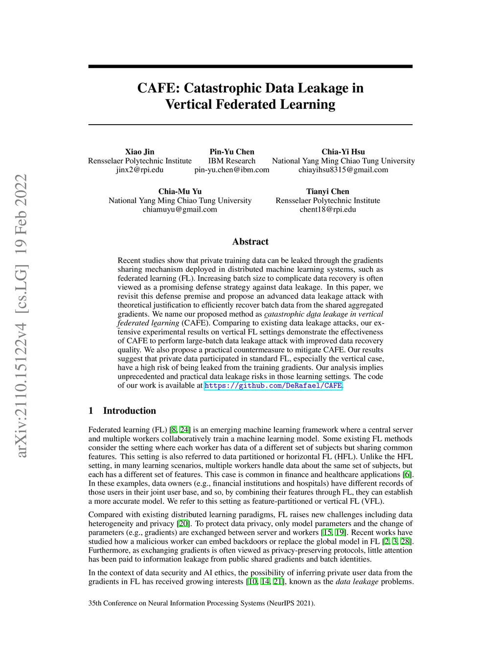 CAFE: Catastrophic Data Leakage in Vertical Federated Learning