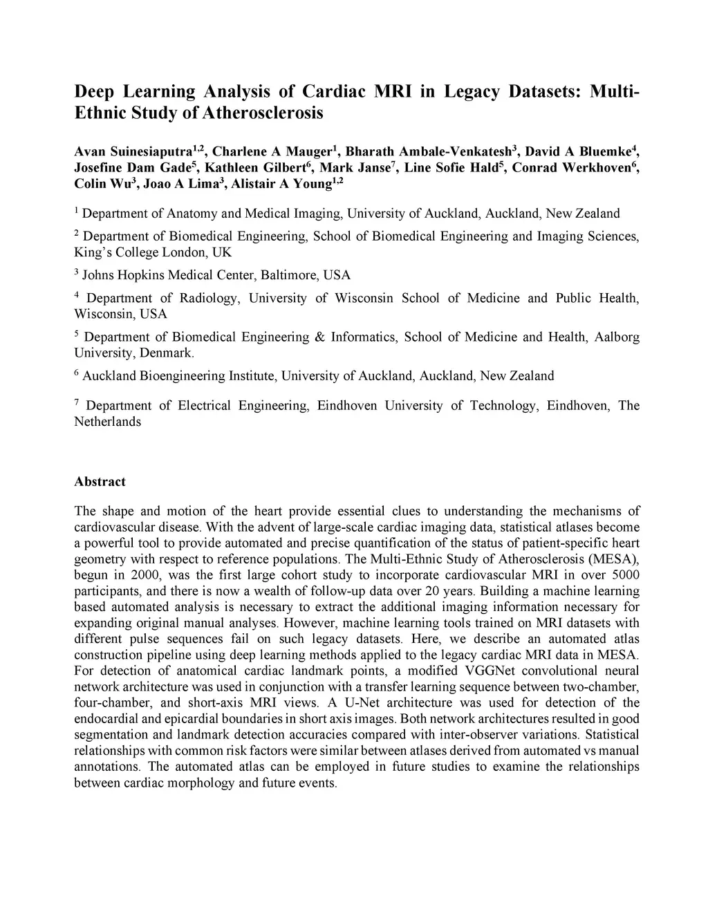 Deep Learning Analysis of Cardiac MRI in Legacy Datasets: Multi-Ethnic