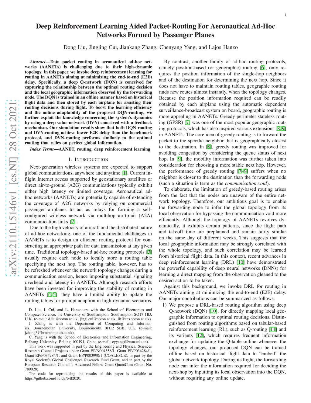 Deep Reinforcement Learning Aided Packet-Routing For Aeronautical Ad-Hoc