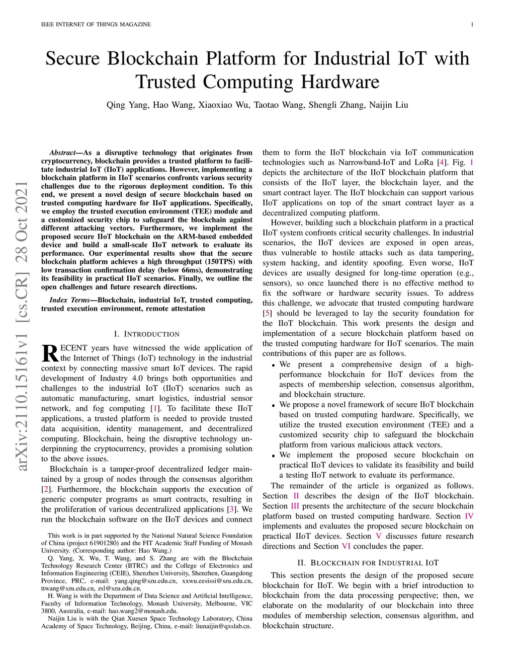 Secure Blockchain Platform for Industrial IoT with Trusted Computing