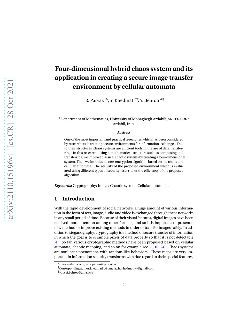 secure image transfer environment by cellular automata