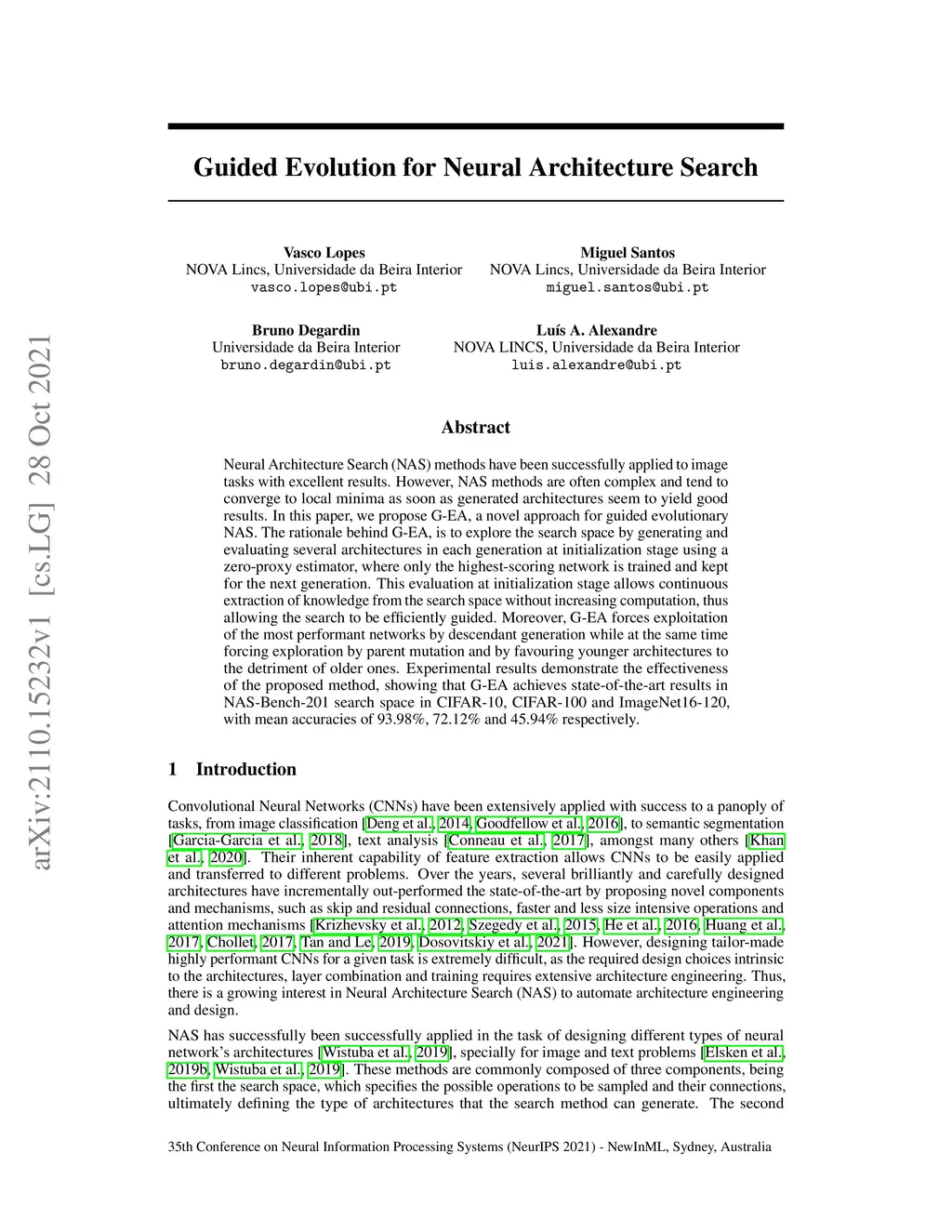 Neural Architecture Search (NAS) methods have been successfully applied to image tasks with excellent results. However, NAS methods are often complex and tend to converge to local minima as soon as generated architectures seem to yield good results. In this paper, we propose G-EA, a novel approach for guided evolutionary NAS. The rationale behind G-EA, is to explore the search space by generating and evaluating several architectures in each generation at initialization stage using a zero-proxy estimator, where only the highest-scoring network is trained and kept for the next generation. This evaluation at initialization stage allows continuous extraction of knowledge from the search space without increasing computation, thus allowing the search to be efficiently guided. Moreover, G-EA forces exploitation of the most performant networks by descendant generation while at the same time forcing exploration by parent mutation and by favouring younger architectures to the detriment of older ones. Experimental results demonstrate the effectiveness of the proposed method, showing that G-EA achieves state-of-the-art results in NAS-Bench-201 search space in CIFAR-10, CIFAR-100 and ImageNet16-120, with mean accuracies of 93.98%, 72.12% and 45.94% respectively.
