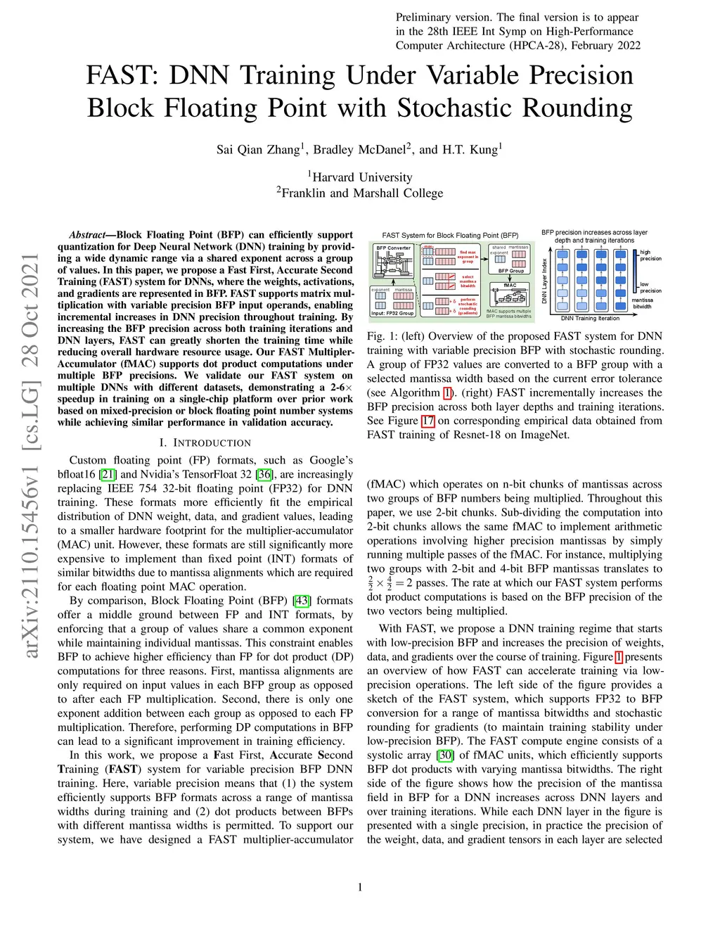 FAST: DNN Training Under Variable Precision Block Floating Point with