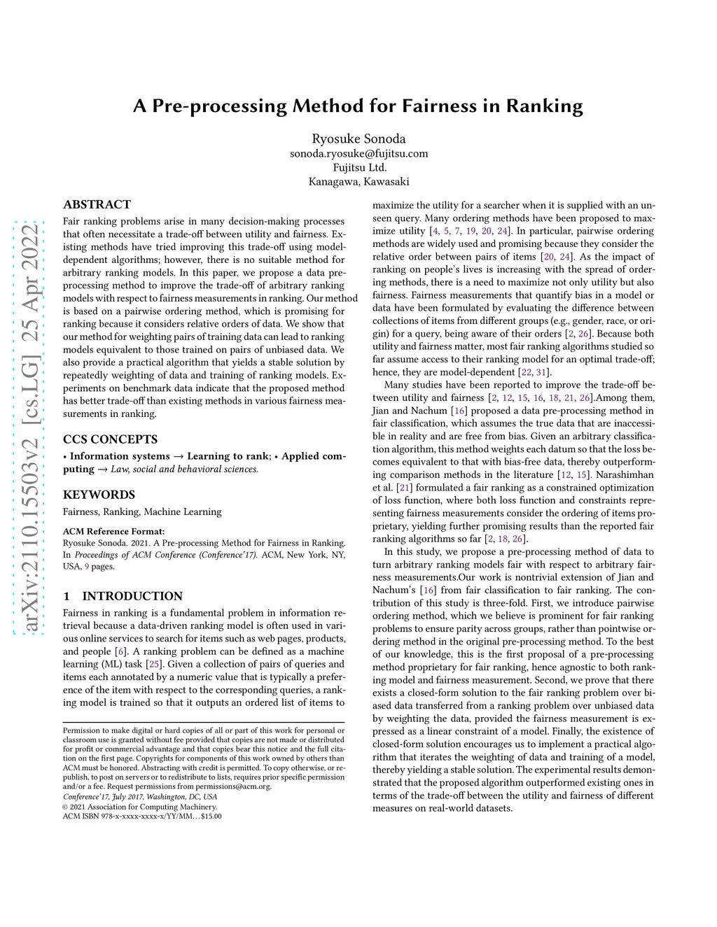 A Pre-processing Method for Fairness in Ranking