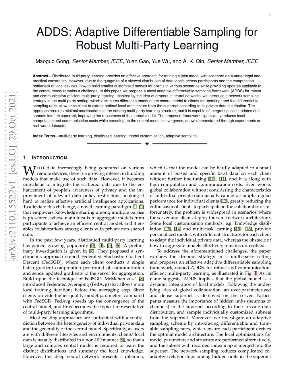 ADDS: Adaptive Differentiable Sampling for Robust Multi-Party Learning