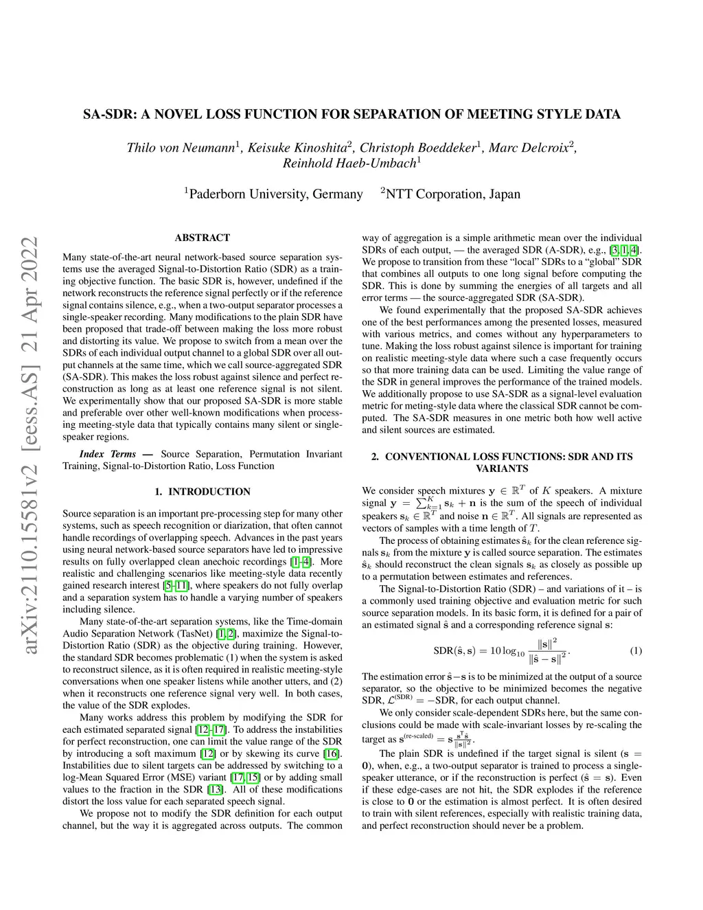 Many state-of-the-art neural network-based source separation systems use the averaged Signal-to-Distortion Ratio (SDR) as a training objective function. The basic SDR is, however, undefined if the network reconstructs the reference signal perfectly or if the reference signal contains silence, e.g., when a two-output separator processes a single-speaker recording. Many modifications to the plain SDR have been proposed that trade-off between making the loss more robust and distorting its value. We propose to switch from a mean over the SDRs of each individual output channel to a global SDR over all output channels at the same time, which we call source-aggregated SDR (SA-SDR). This makes the loss robust against silence and perfect reconstruction as long as at least one reference signal is not silent. We experimentally show that our proposed SA-SDR is more stable and preferable over other well-known modifications when processing meeting-style data that typically contains many silent or single-speaker regions.