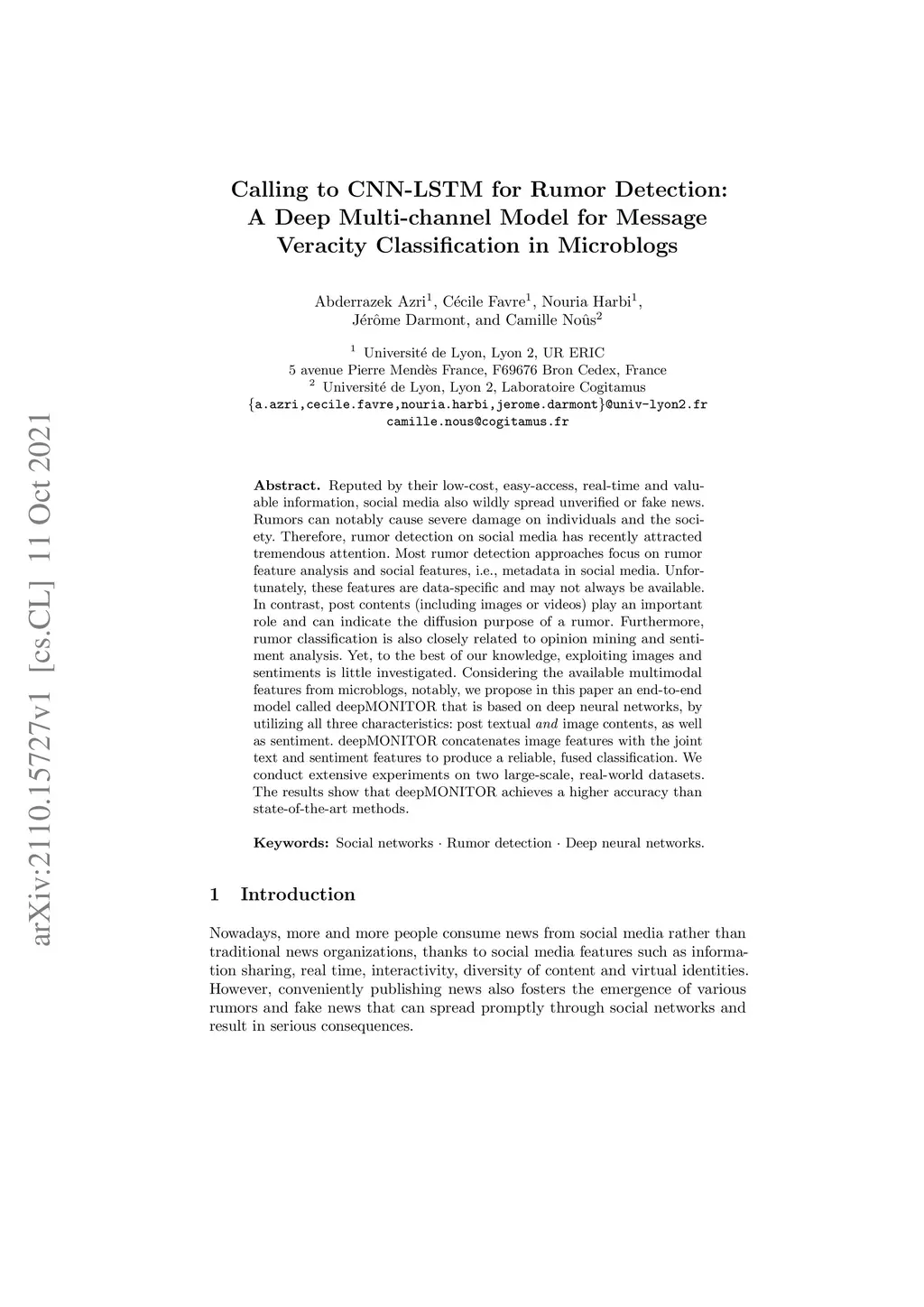 Calling to CNN-LSTM for Rumor Detection: A Deep Multi-channel Model for