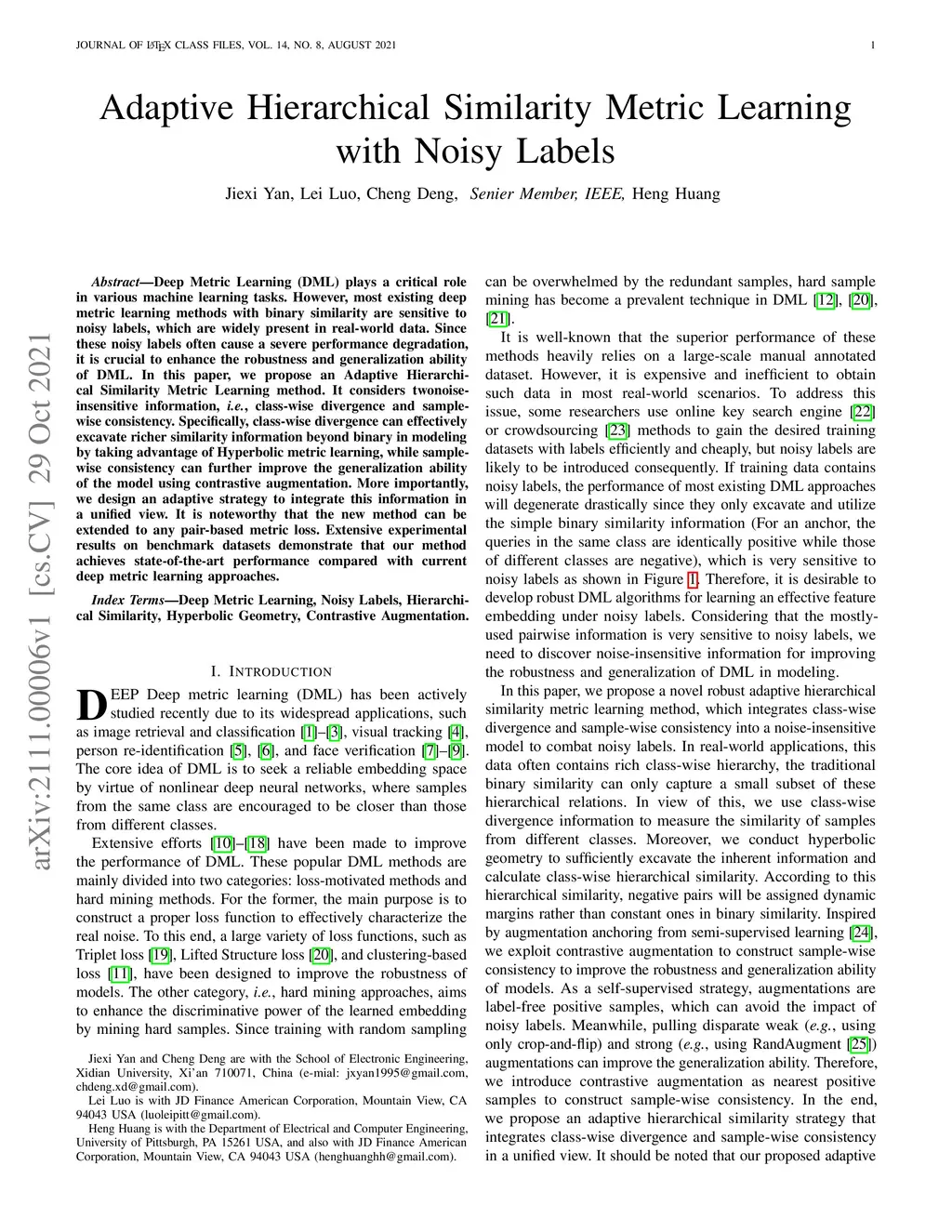 Adaptive Hierarchical Similarity Metric Learning with Noisy Labels