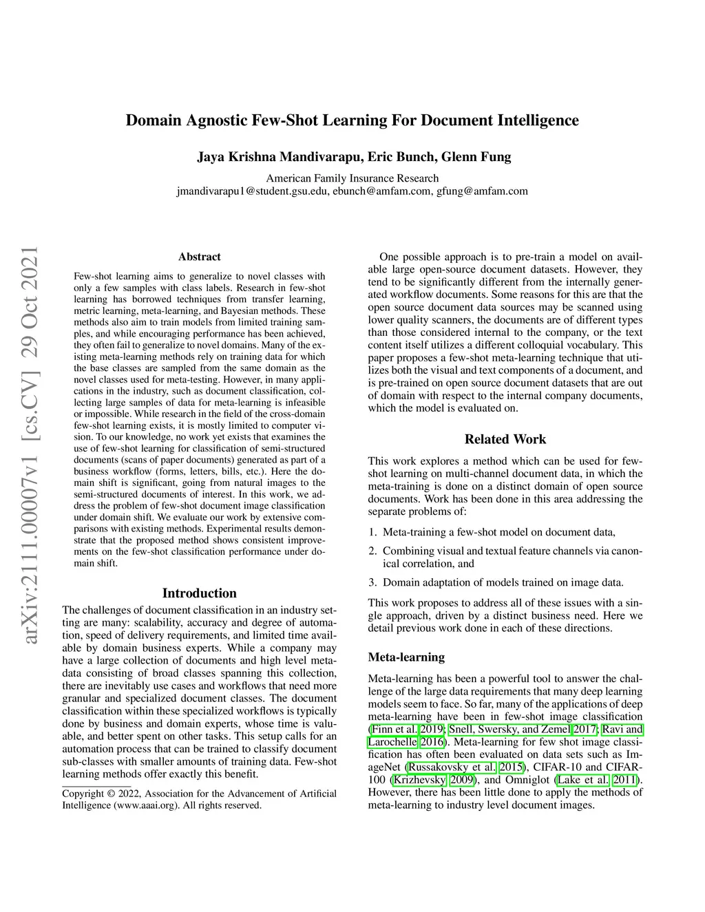 Domain Agnostic Few-Shot Learning For Document Intelligence
