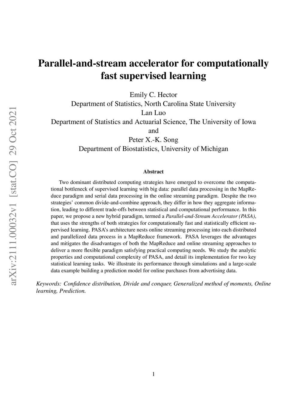 Two dominant distributed computing strategies have emerged to overcome the computational bottleneck of supervised learning with big data: parallel data processing in the MapReduce paradigm and serial data processing in the online streaming paradigm. Despite the two strategies' common divide-and-combine approach, they differ in how they aggregate information, leading to different trade-offs between statistical and computational performance. In this paper, we propose a new hybrid paradigm, termed a Parallel-and-Stream Accelerator (PASA), that uses the strengths of both strategies for computationally fast and statistically efficient supervised learning. PASA's architecture nests online streaming processing into each distributed and parallelized data process in a MapReduce framework. PASA leverages the advantages and mitigates the disadvantages of both the MapReduce and online streaming approaches to deliver a more flexible paradigm satisfying practical computing needs. We study the analytic properties and computational complexity of PASA, and detail its implementation for two key statistical learning tasks. We illustrate its performance through simulations and a large-scale data example building a prediction model for online purchases from advertising data.