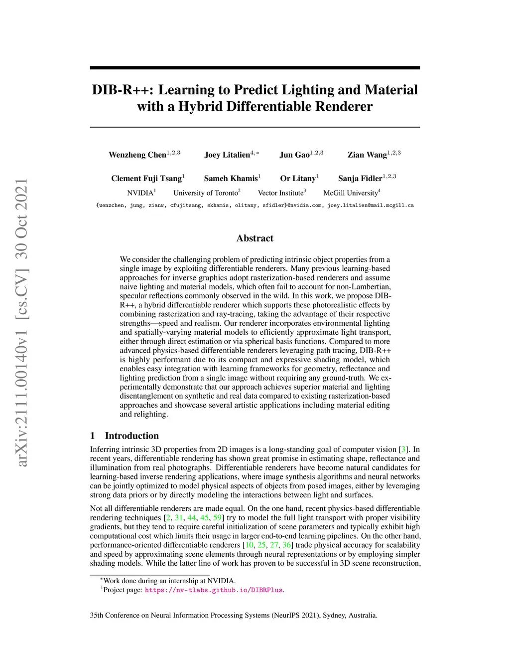 DIB-R++: Learning to Predict Lighting and Material with a Hybrid