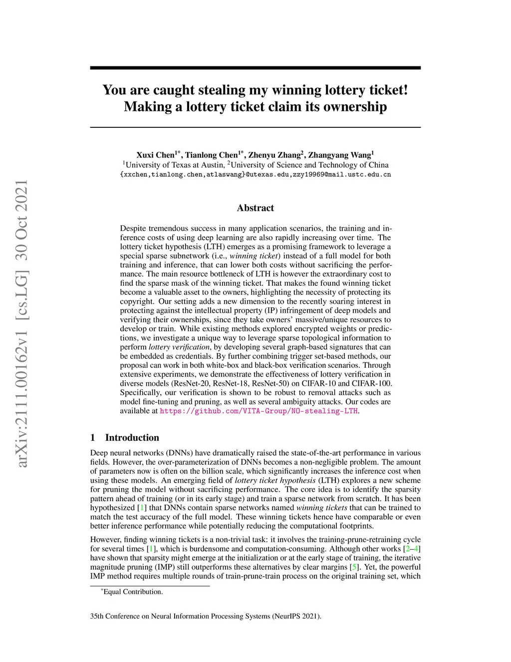Despite tremendous success in many application scenarios, the training and inference costs of using deep learning are also rapidly increasing over time. The lottery ticket hypothesis (LTH) emerges as a promising framework to leverage a special sparse subnetwork (i.e., winning ticket) instead of a full model for both training and inference, that can lower both costs without sacrificing the performance. The main resource bottleneck of LTH is however the extraordinary cost to find the sparse mask of the winning ticket. That makes the found winning ticket become a valuable asset to the owners, highlighting the necessity of protecting its copyright. Our setting adds a new dimension to the recently soaring interest in protecting against the intellectual property (IP) infringement of deep models and verifying their ownerships, since they take owners' massive/unique resources to develop or train. While existing methods explored encrypted weights or predictions, we investigate a unique way to leverage sparse topological information to perform lottery verification, by developing several graph-based signatures that can be embedded as credentials. By further combining trigger set-based methods, our proposal can work in both white-box and black-box verification scenarios. Through extensive experiments, we demonstrate the effectiveness of lottery verification in diverse models (ResNet-20, ResNet-18, ResNet-50) on CIFAR-10 and CIFAR-100. Specifically, our verification is shown to be robust to removal attacks such as model fine-tuning and pruning, as well as several ambiguity attacks. Our codes are available at https://github.com/VITA-Group/NO-stealing-LTH.
