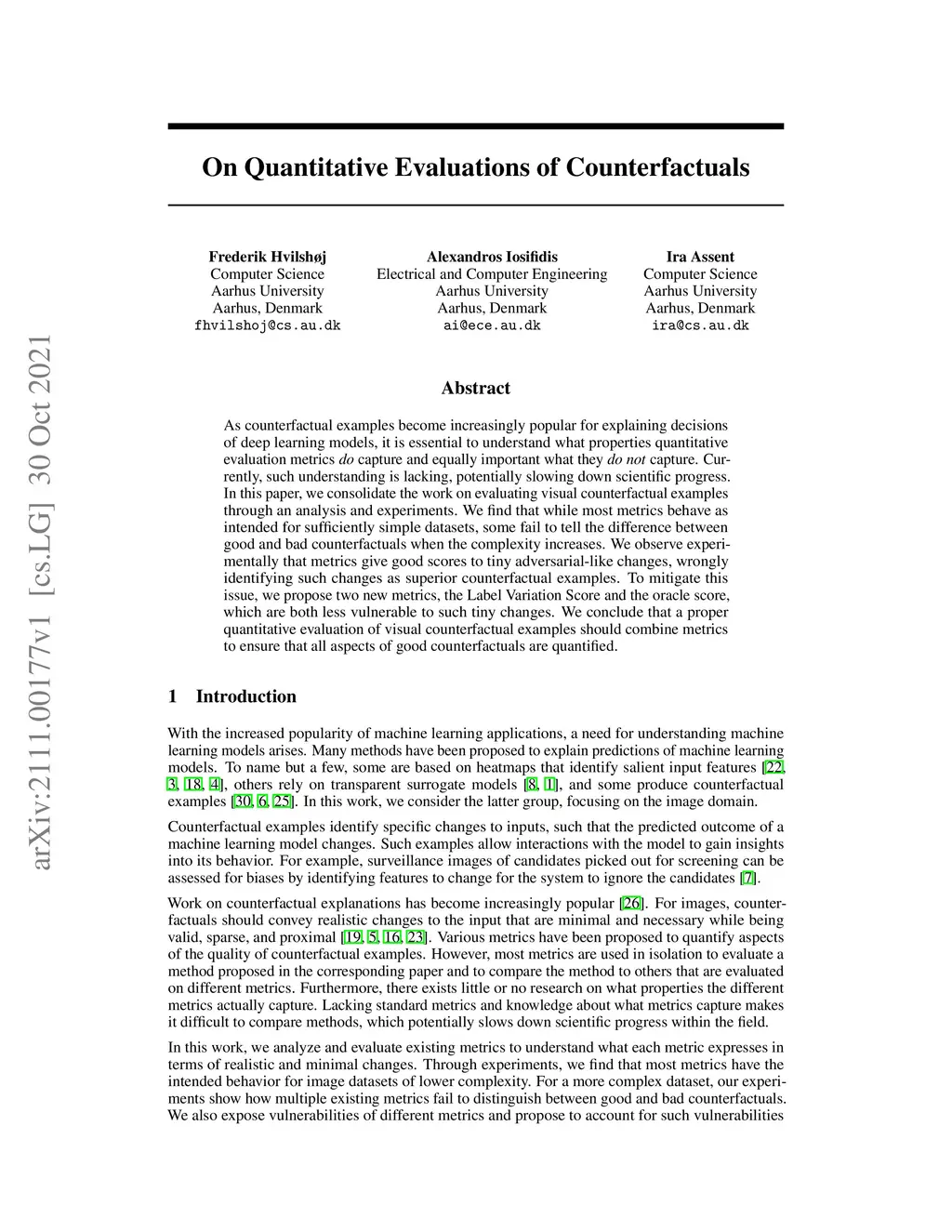 As counterfactual examples become increasingly popular for explaining decisions of deep learning models, it is essential to understand what properties quantitative evaluation metrics do capture and equally important what they do not capture. Currently, such understanding is lacking, potentially slowing down scientific progress. In this paper, we consolidate the work on evaluating visual counterfactual examples through an analysis and experiments. We find that while most metrics behave as intended for sufficiently simple datasets, some fail to tell the difference between good and bad counterfactuals when the complexity increases. We observe experimentally that metrics give good scores to tiny adversarial-like changes, wrongly identifying such changes as superior counterfactual examples. To mitigate this issue, we propose two new metrics, the Label Variation Score and the Oracle score, which are both less vulnerable to such tiny changes. We conclude that a proper quantitative evaluation of visual counterfactual examples should combine metrics to ensure that all aspects of good counterfactuals are quantified.