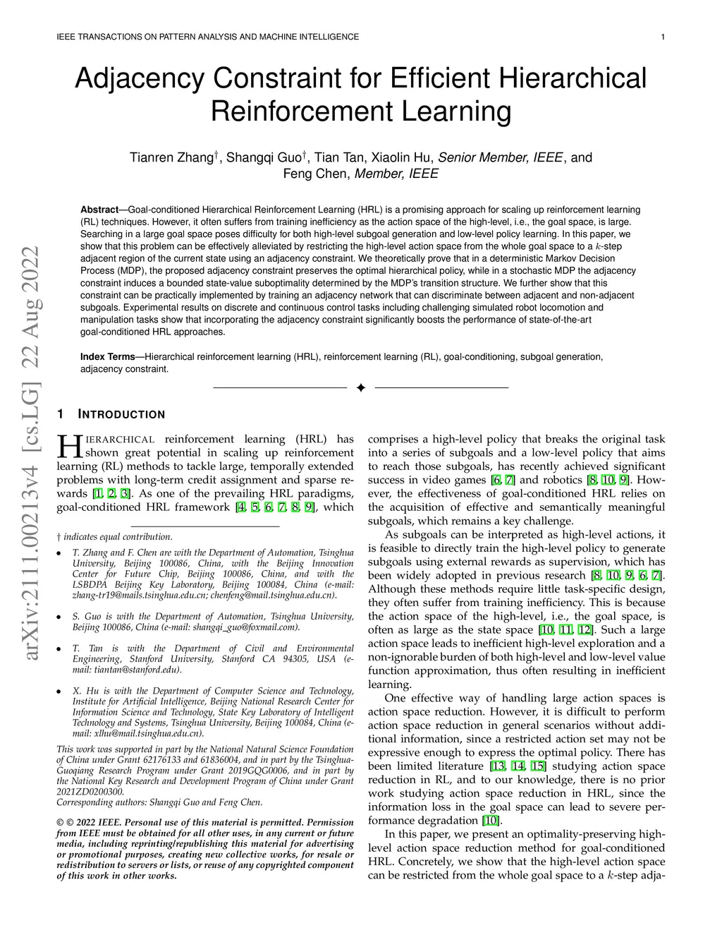 Adjacency constraint for efficient hierarchical reinforcement learning