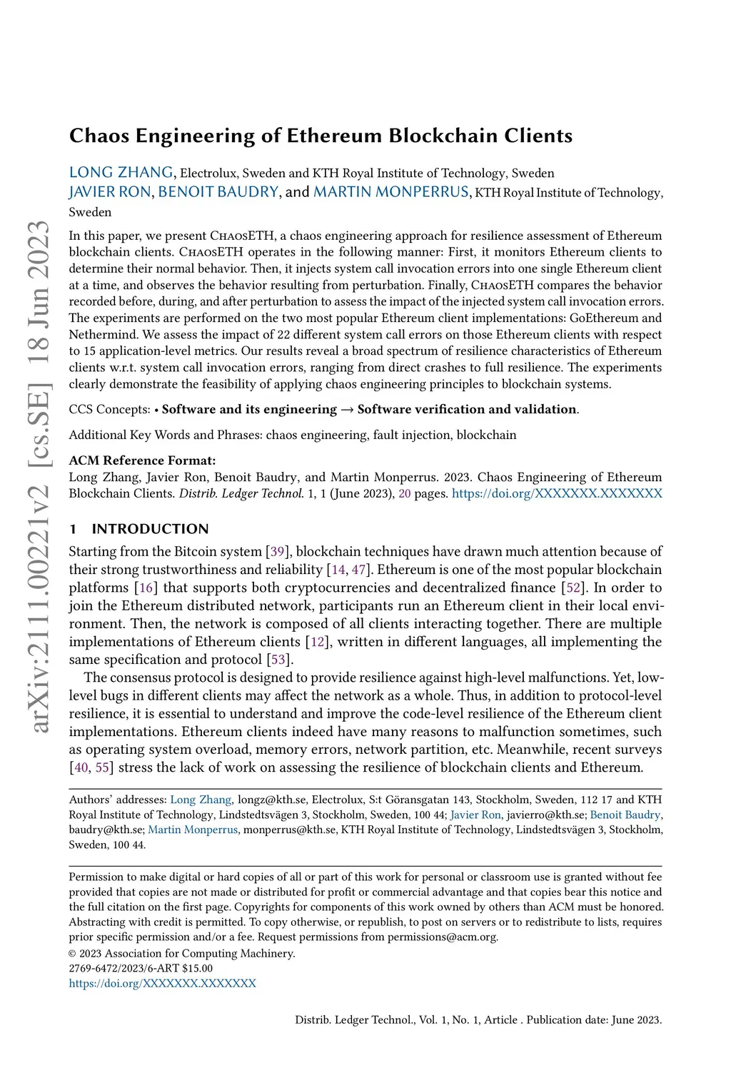In this paper, we present ChaosETH, a chaos engineering approach for resilience assessment of Ethereum blockchain clients. ChaosETH operates in the following manner: First, it monitors Ethereum clients to determine their normal behavior. Then, it injects system call invocation errors into one single Ethereum client at a time, and observes the behavior resulting from perturbation. Finally, ChaosETH compares the behavior recorded before, during, and after perturbation to assess the impact of the injected system call invocation errors. The experiments are performed on the two most popular Ethereum client implementations: GoEthereum and Nethermind. We assess the impact of 22 different system call errors on those Ethereum clients with respect to 15 application-level metrics. Our results reveal a broad spectrum of resilience characteristics of Ethereum clients w.r.t. system call invocation errors, ranging from direct crashes to full resilience. The experiments clearly demonstrate the feasibility of applying chaos engineering principles to blockchain systems.