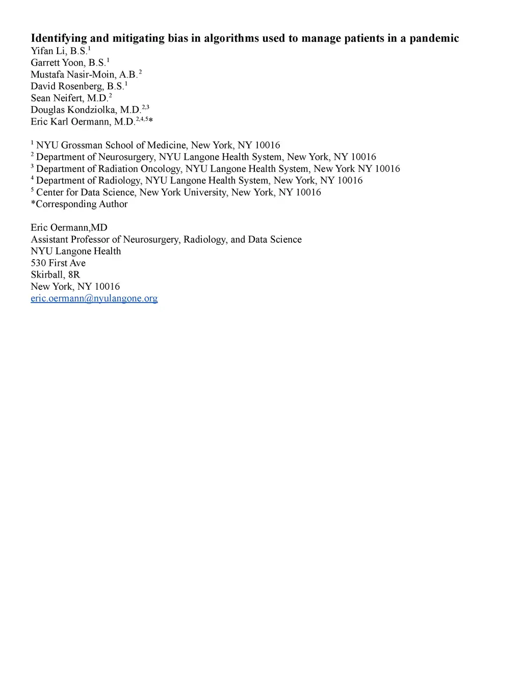 Numerous COVID-19 clinical decision support systems have been developed. However many of these systems do not have the merit for validity due to methodological shortcomings including algorithmic bias. Methods Logistic regression models were created to predict COVID-19 mortality, ventilator status and inpatient status using a real-world dataset consisting of four hospitals in New York City and analyzed for biases against race, gender and age. Simple thresholding adjustments were applied in the training process to establish more equitable models. Results Compared to the naively trained models, the calibrated models showed a 57% decrease in the number of biased trials, while predictive performance, measured by area under the receiver/operating curve (AUC), remained unchanged. After calibration, the average sensitivity of the predictive models increased from 0.527 to 0.955. Conclusion We demonstrate that naively training and deploying machine learning models on real world data for predictive analytics of COVID-19 has a high risk of bias. Simple implemented adjustments or calibrations during model training can lead to substantial and sustained gains in fairness on subsequent deployment.