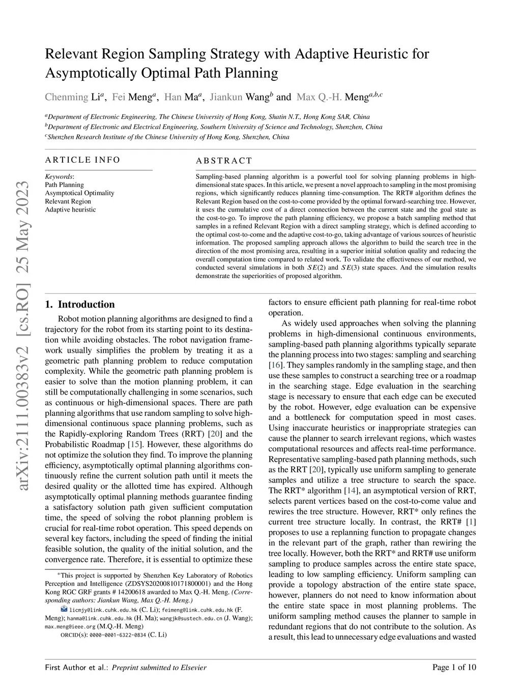 Relevant Region Sampling Strategy with Adaptive Heuristic for