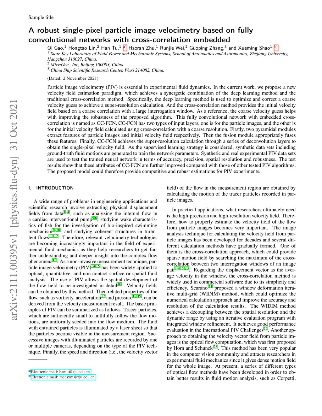 Particle image velocimetry (PIV) is essential in experimental fluid dynamics. In the current work, we propose a new velocity field estimation paradigm, which achieves a synergetic combination of the deep learning method and the traditional cross-correlation method. Specifically, the deep learning method is used to optimize and correct a coarse velocity guess to achieve a super-resolution calculation. And the cross-correlation method provides the initial velocity field based on a coarse correlation with a large interrogation window. As a reference, the coarse velocity guess helps with improving the robustness of the proposed algorithm. This fully convolutional network with embedded cross-correlation is named as CC-FCN. CC-FCN has two types of input layers, one is for the particle images, and the other is for the initial velocity field calculated using cross-correlation with a coarse resolution. Firstly, two pyramidal modules extract features of particle images and initial velocity field respectively. Then the fusion module appropriately fuses these features. Finally, CC-FCN achieves the super-resolution calculation through a series of deconvolution layers to obtain the single-pixel velocity field. As the supervised learning strategy is considered, synthetic data sets including ground-truth fluid motions are generated to train the network parameters. Synthetic and real experimental PIV data sets are used to test the trained neural network in terms of accuracy, precision, spatial resolution and robustness. The test results show that these attributes of CC-FCN are further improved compared with those of other tested PIV algorithms. The proposed model could therefore provide competitive and robust estimations for PIV experiments.
