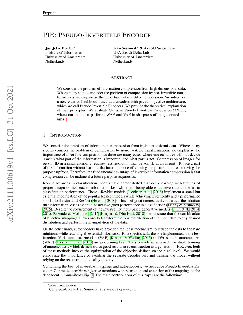 PIE: Pseudo-Invertible Encoder