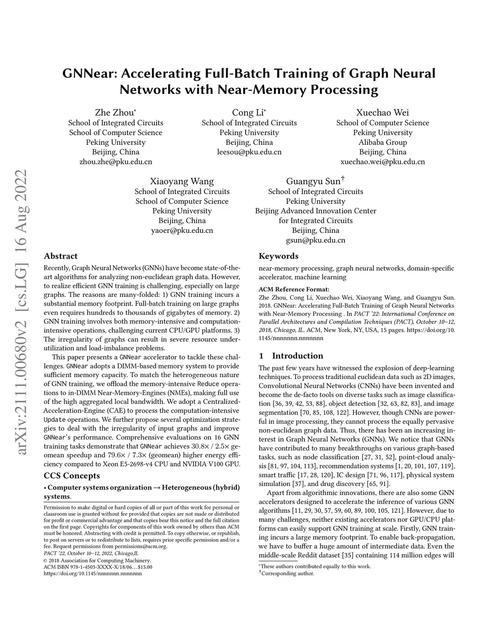 GNNear: Accelerating Full-Batch Training of Graph Neural Networks with