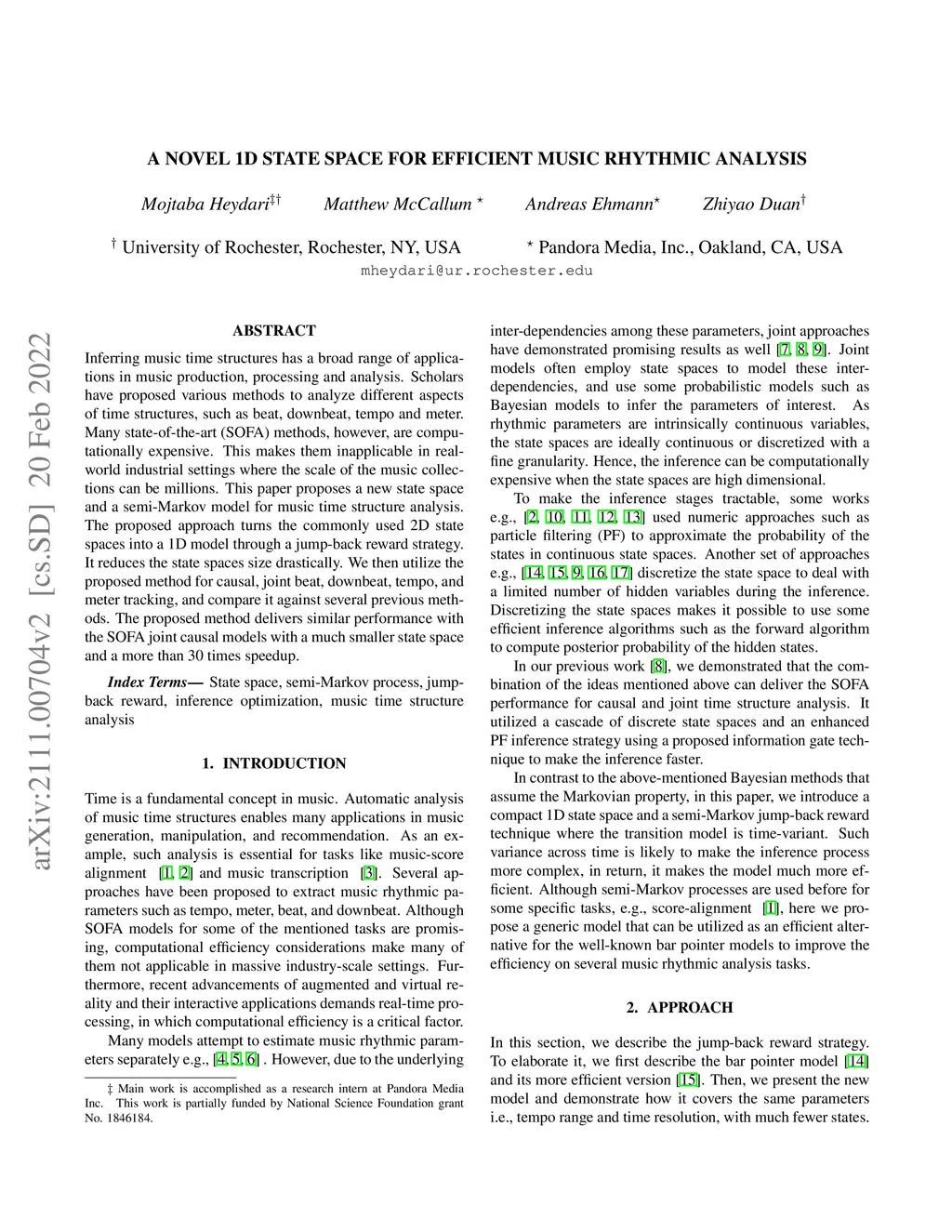 A Novel 1D State Space for Efficient Music Rhythmic Analysis