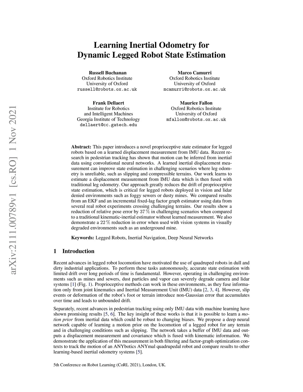 Learning Inertial Odometry for Dynamic Legged Robot State Estimation