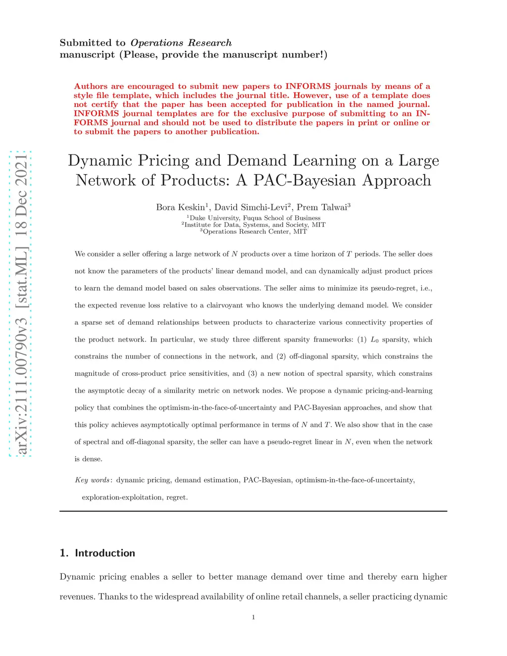 We consider a seller offering a large network of products over a time horizon of periods. The seller does not know the parameters of the products' linear demand model, and can dynamically adjust product prices to learn the demand model based on sales observations. The seller aims to minimize its pseudo-regret, i.e., the expected revenue loss relative to a clairvoyant who knows the underlying demand model. We consider a sparse set of demand relationships between products to characterize various connectivity properties of the product network. In particular, we study three different sparsity frameworks: (1) sparsity, which constrains the number of connections in the network, and (2) off-diagonal sparsity, which constrains the magnitude of cross-product price sensitivities, and (3) a new notion of spectral sparsity, which constrains the asymptotic decay of a similarity metric on network nodes. We propose a dynamic pricing-and-learning policy that combines the optimism-in-the-face-of-uncertainty and PAC-Bayesian approaches, and show that this policy achieves asymptotically optimal performance in terms of and . We also show that in the case of spectral and off-diagonal sparsity, the seller can have a pseudo-regret linear in , even when the network is dense.