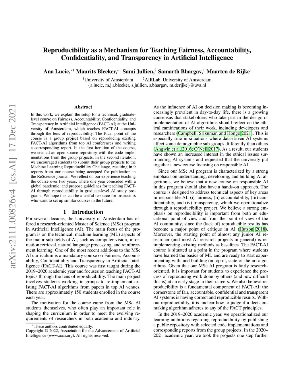 Reproducibility as a Mechanism for Teaching Fairness, Accountability,