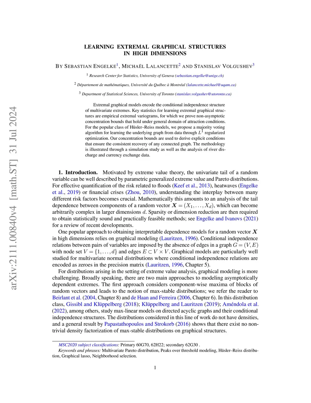 Learning extremal graphical structures in high dimensions