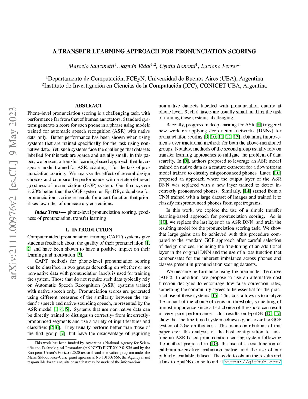 A transfer learning based approach for pronunciation scoring