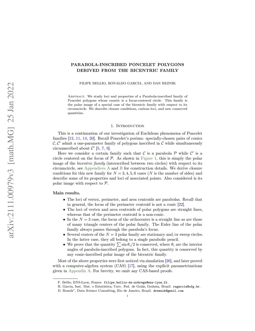 We study loci and properties of a Parabola-inscribed family of Poncelet polygons whose caustic is a focus-centered circle. This family is the polar image of a special case of the bicentric family with respect to its circumcircle. We describe closure conditions, curious loci, and new conserved quantities.