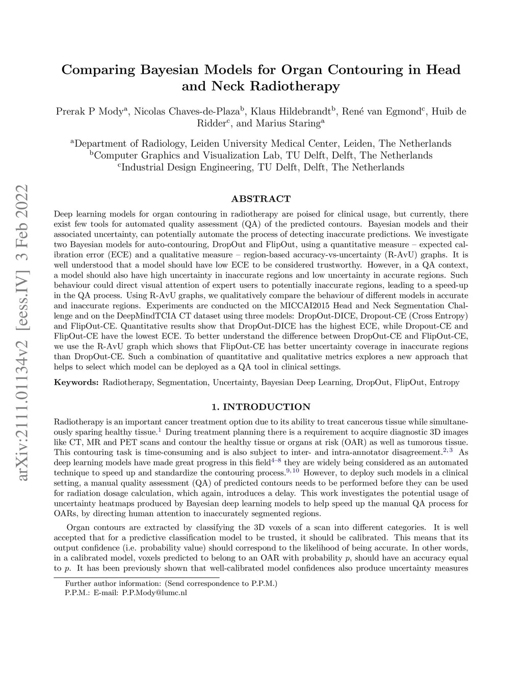 Comparing Bayesian Models for Organ Contouring in Head and Neck