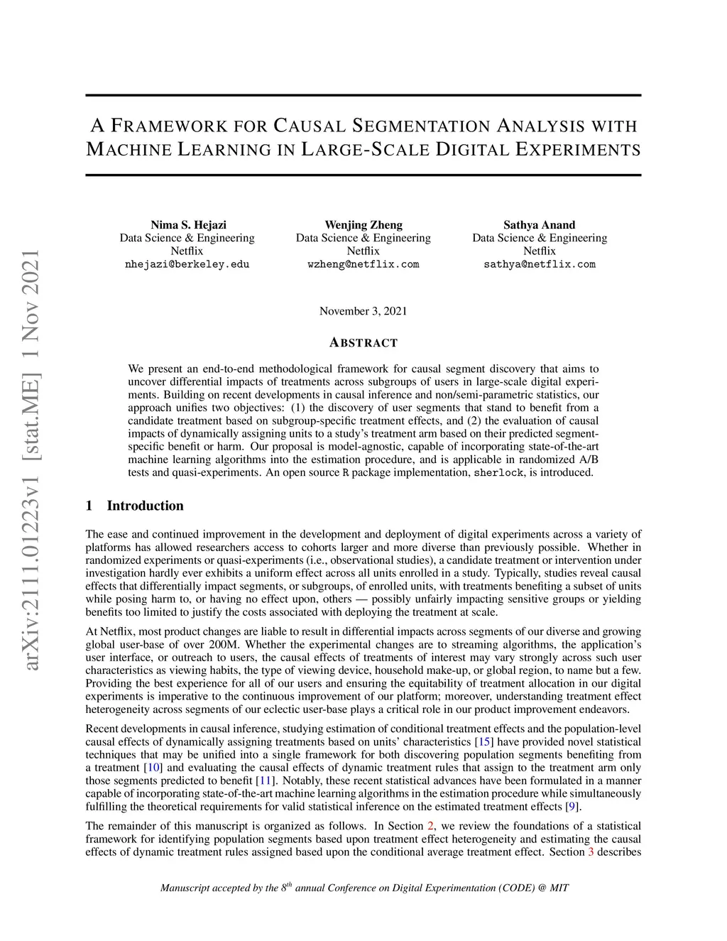 We present an end-to-end methodological framework for causal segment discovery that aims to uncover differential impacts of treatments across subgroups of users in large-scale digital experiments. Building on recent developments in causal inference and non/semi-parametric statistics, our approach unifies two objectives: (1) the discovery of user segments that stand to benefit from a candidate treatment based on subgroup-specific treatment effects, and (2) the evaluation of causal impacts of dynamically assigning units to a study's treatment arm based on their predicted segment-specific benefit or harm. Our proposal is model-agnostic, capable of incorporating state-of-the-art machine learning algorithms into the estimation procedure, and is applicable in randomized A/B tests and quasi-experiments. An open source R package implementation, sherlock, is introduced.