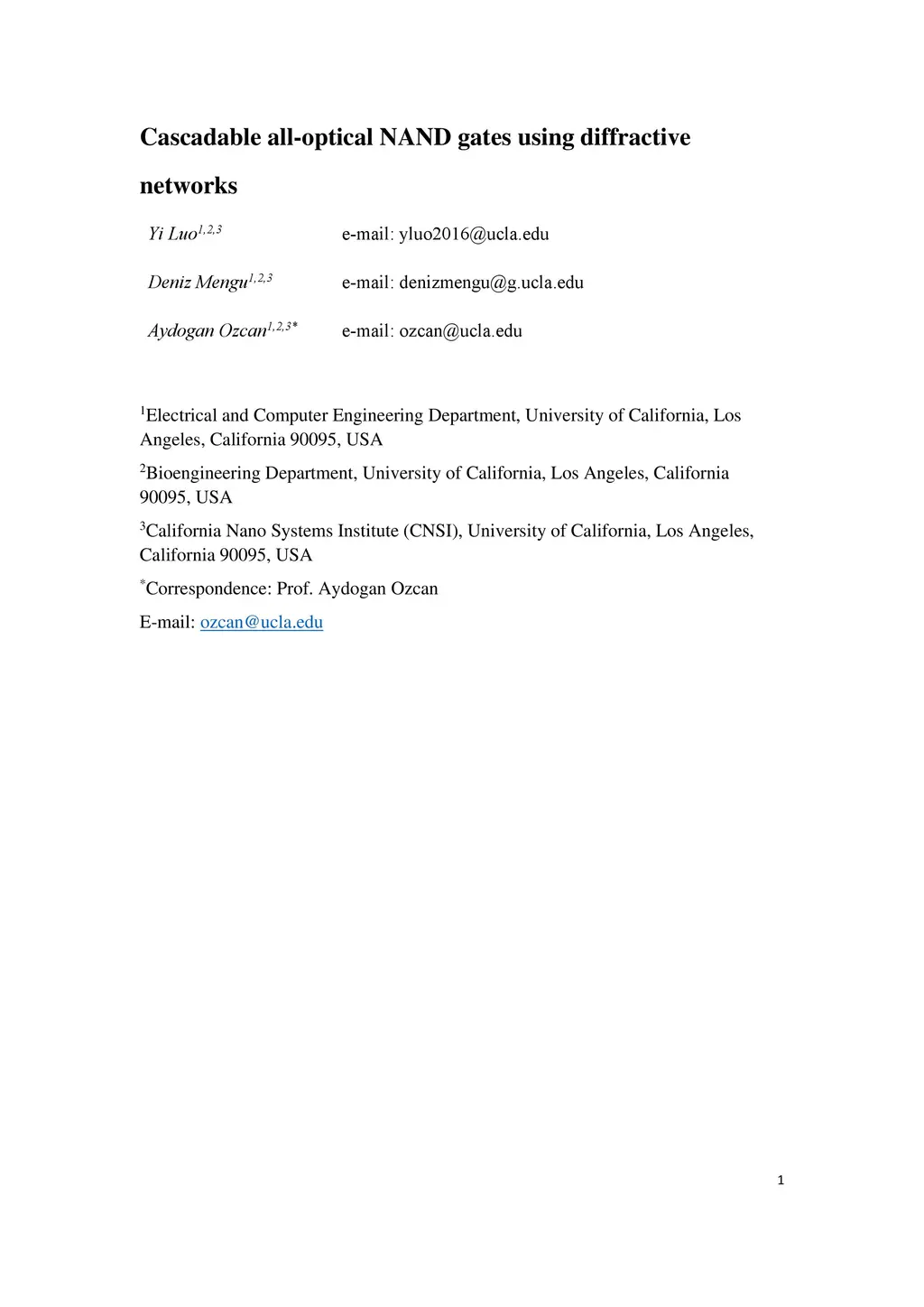 Cascadable all-optical NAND gates using diffractive networks