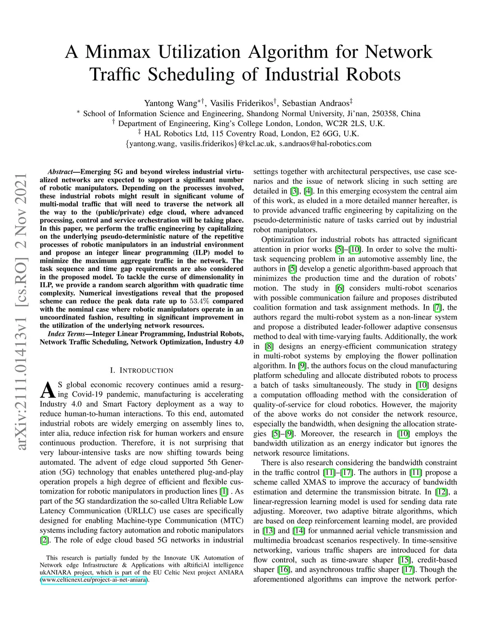 Emerging 5G and beyond wireless industrial virtualized networks are expected to support a significant number of robotic manipulators. Depending on the processes involved, these industrial robots might result in significant volume of multi-modal traffic that will need to traverse the network all the way to the (public/private) edge cloud, where advanced processing, control and service orchestration will be taking place. In this paper, we perform the traffic engineering by capitalizing on the underlying pseudo-deterministic nature of the repetitive processes of robotic manipulators in an industrial environment and propose an integer linear programming (ILP) model to minimize the maximum aggregate traffic in the network. The task sequence and time gap requirements are also considered in the proposed model. To tackle the curse of dimensionality in ILP, we provide a random search algorithm with quadratic time complexity. Numerical investigations reveal that the proposed scheme can reduce the peak data rate up to 53.4% compared with the nominal case where robotic manipulators operate in an uncoordinated fashion, resulting in significant improvement in the utilization of the underlying network resources.