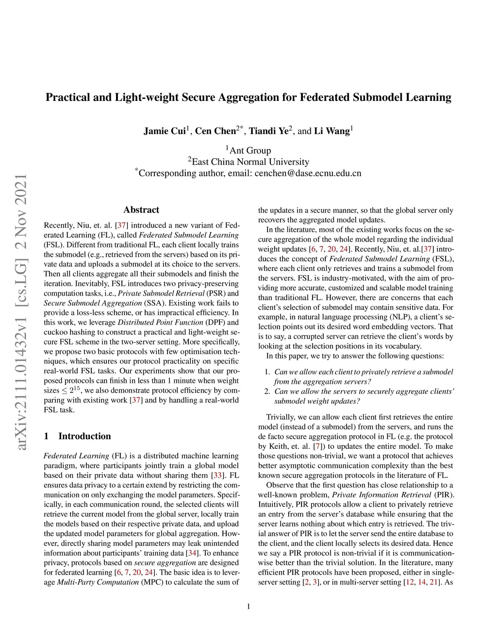 Practical and Light-weight Secure Aggregation for Federated Submodel