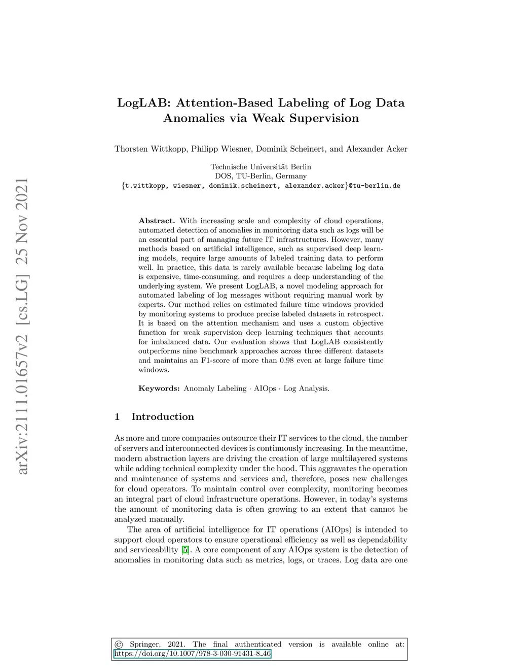 LogLAB: Attention-Based Labeling of Log Data Anomalies via Weak
