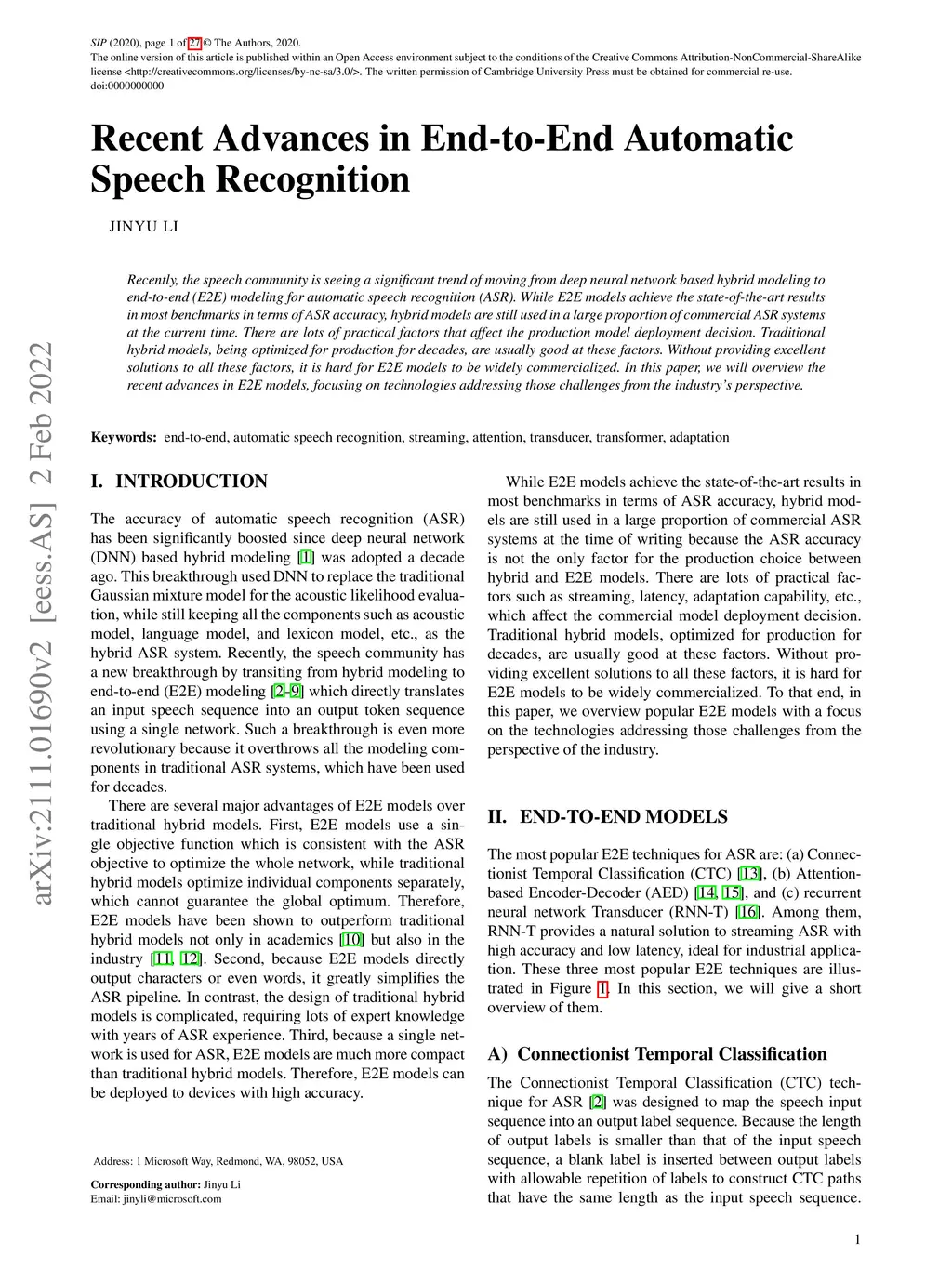 Recent Advances in End-to-End Automatic Speech Recognition