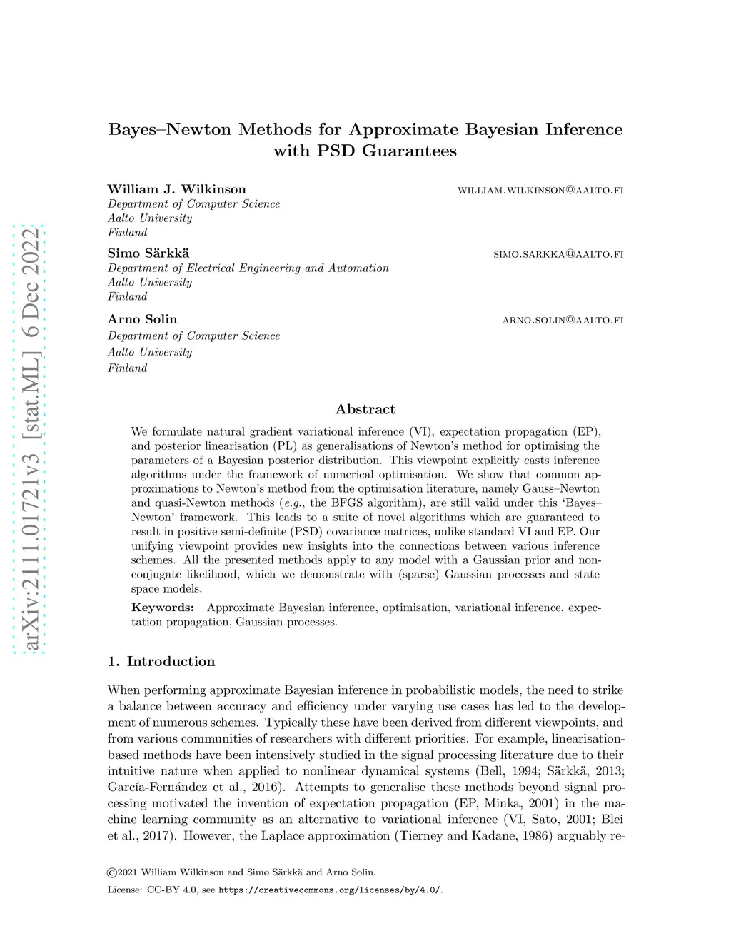 Bayes-Newton Methods for Approximate Bayesian Inference with PSD