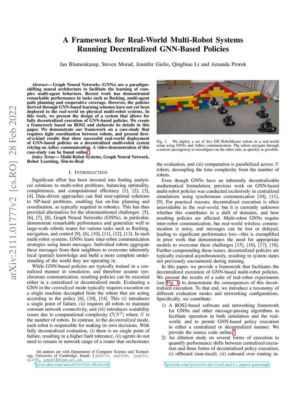 GNNs are a paradigm-shifting neural architecture to facilitate the learning of complex multi-agent behaviors. Recent work has demonstrated remarkable performance in tasks such as flocking, multi-agent path planning and cooperative coverage. However, the policies derived through GNN-based learning schemes have not yet been deployed to the real-world on physical multi-robot systems. In this work, we present the design of a system that allows for fully decentralized execution of GNN-based policies. We create a framework based on ROS2 and elaborate its details in this paper. We demonstrate our framework on a case-study that requires tight coordination between robots, and present first-of-a-kind results that show successful real-world deployment of GNN-based policies on a decentralized multi-robot system relying on Adhoc communication. A video demonstration of this case-study, as well as the accompanying source code repository, can be found online. https://www.youtube.com/watch?v=COh-WLn4iO4 https://github.com/proroklab/ros2_multi_agent_passage https://github.com/proroklab/rl_multi_agent_passage