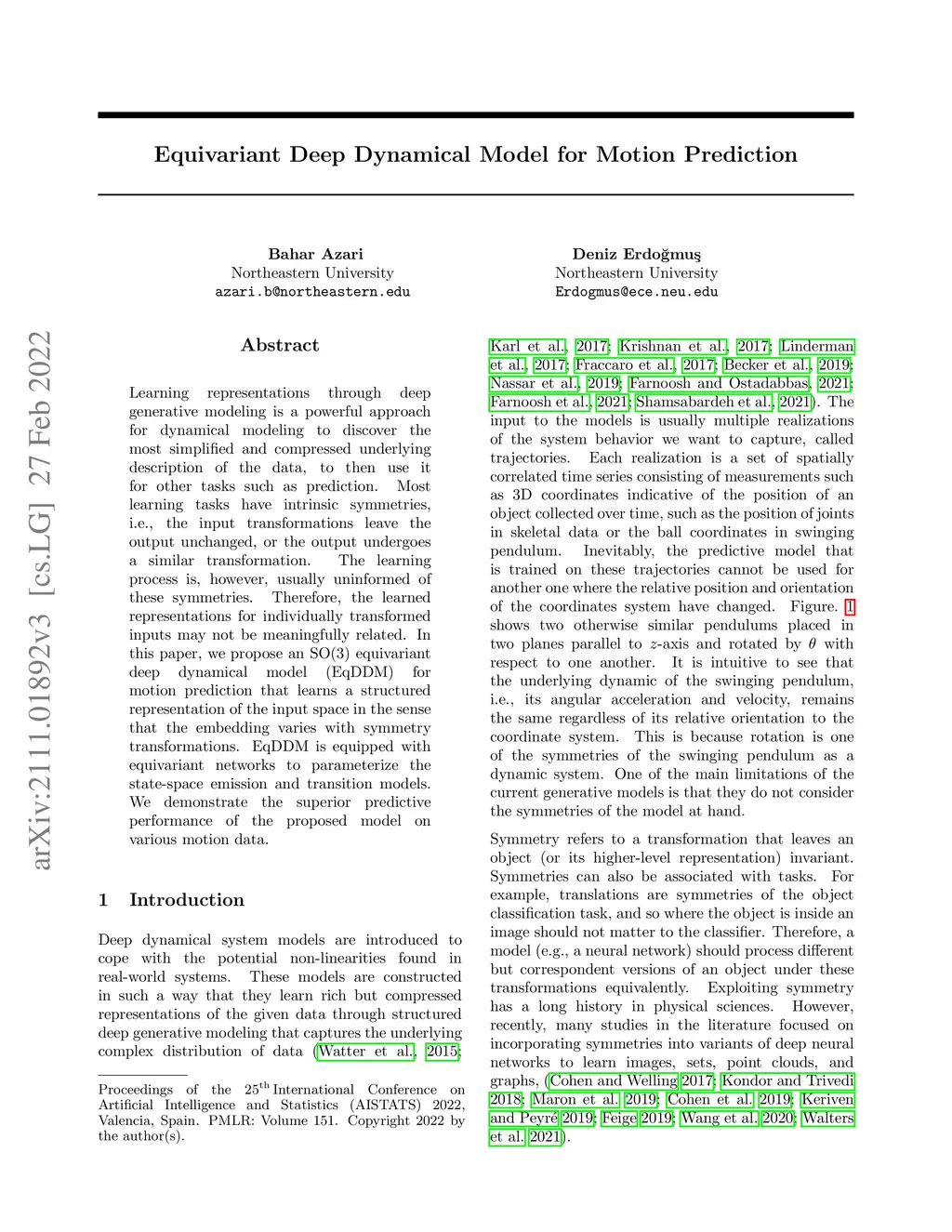 Equivariant Deep Dynamical Model for Motion Prediction